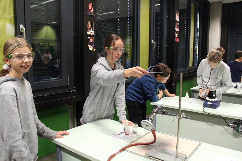Die Schülerinnen und Schüler lernen, eigenständig Experimente durchzuführen. Der Wahlpflichtbereich MINT bestärkt sie in diesen Fähigkeiten.